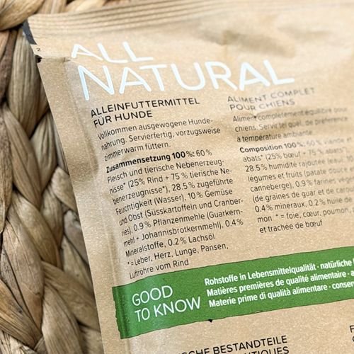 • Die Zubereitung erfolgt schonend, die Nahrung wird kalt abgefüllt und danach gegart.